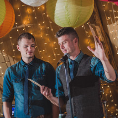 My sister, Toby's best man and Dad worked their speeches beautifully. Toby's Mum called time on his Dad when he broke out his condom anecdote :D